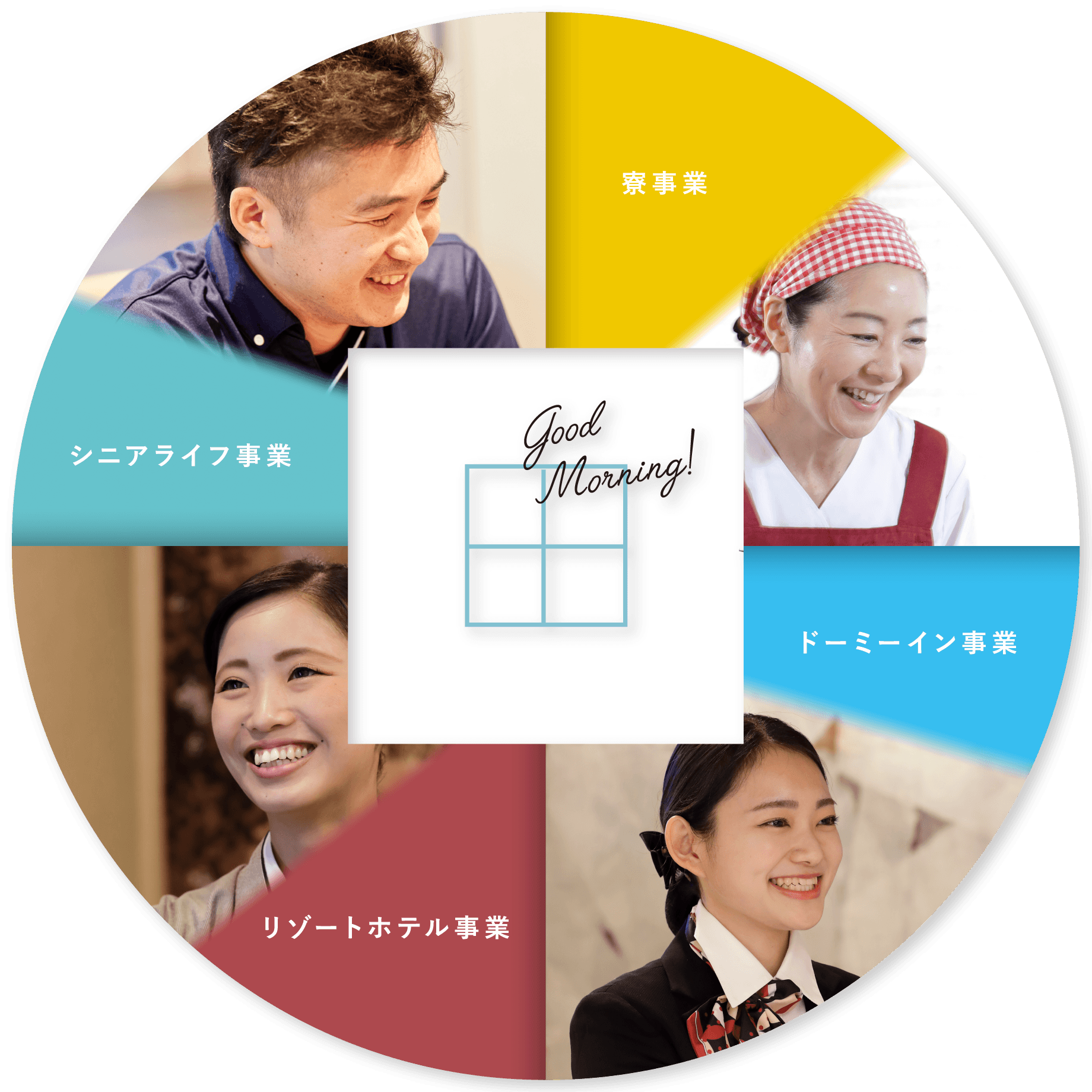 盤石な寮事業と、成長を支えるホテル事業、そして、シニア・フーズなどの様々な事業を通じて、ホスピタリティカンパニーとして、社会になくてはならない、そして、ユニークな事業構造の企業として、存続し発展を続けていきます。