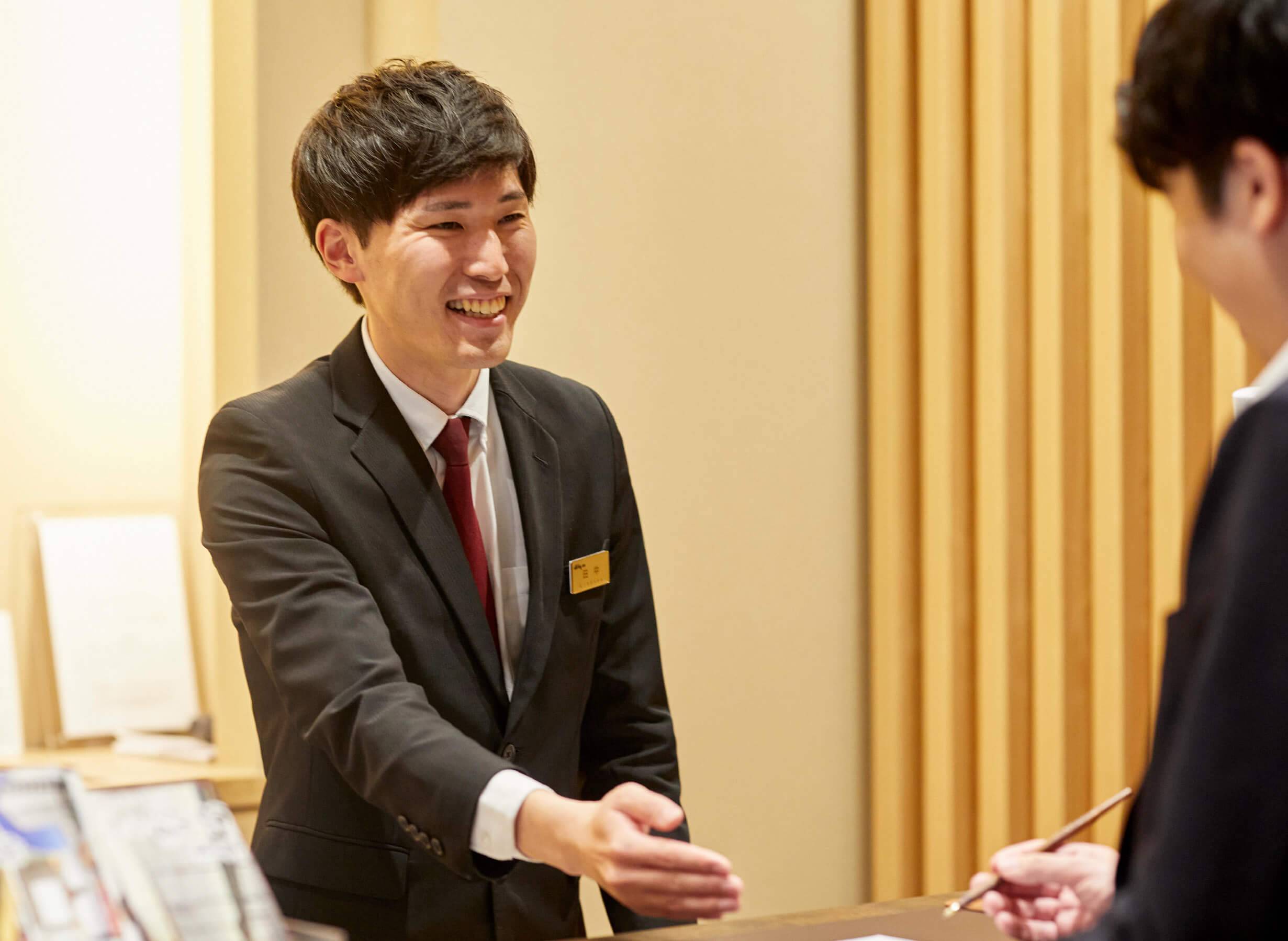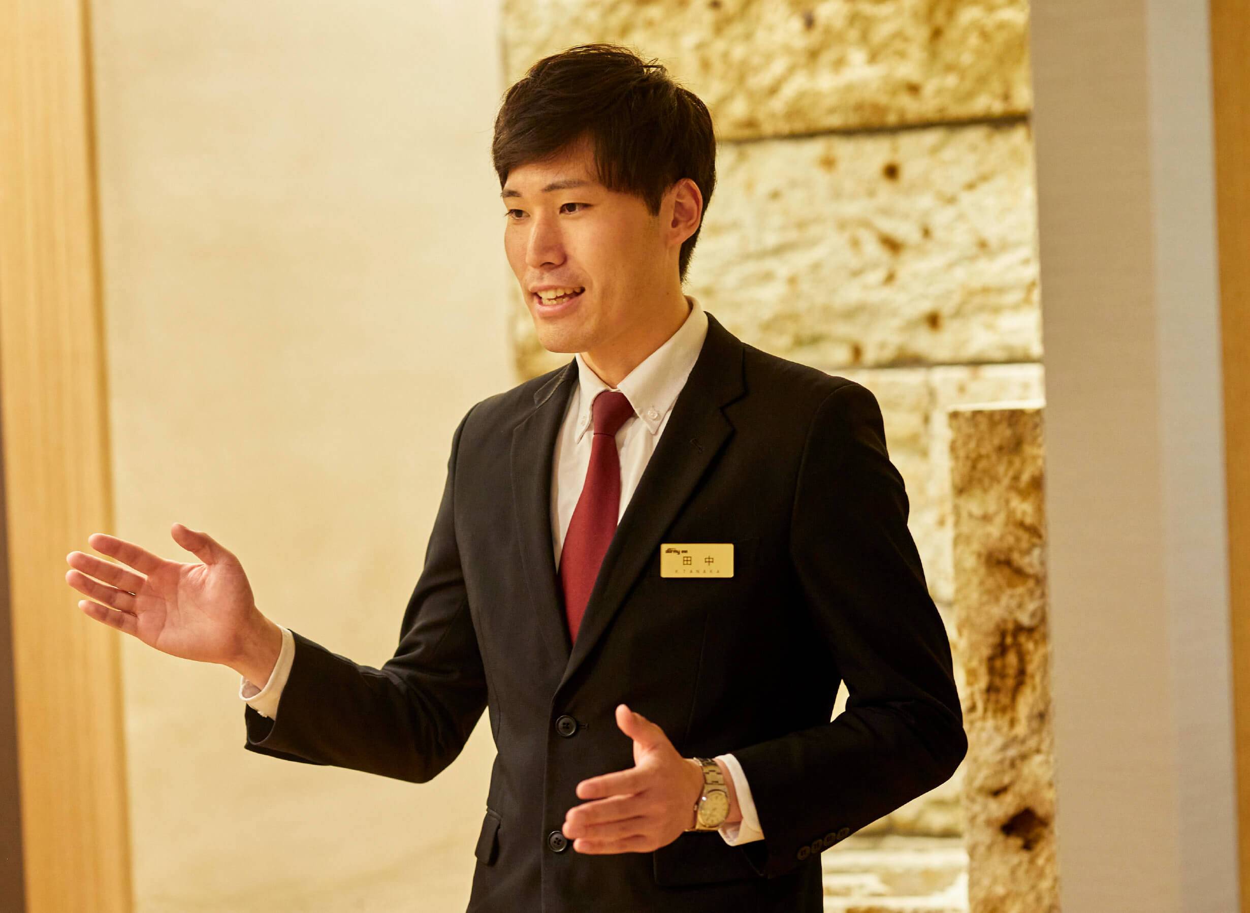 人の役に立てるホテリエになりたいと思っているので、お客様のご要望にお応えして喜ぶ姿を見られるのは大きな幸せ。海外のお客様から「結婚記念日でレストランを予約したいから助けてほしい」とお願いされたとき、ご希望に沿ったレストランを探して予約し、その日が結婚記念日であることも伝えました。すると、レストランから特別メニューがサービスされ、お客様は大感激。「ステキな記念日になった」と最高の笑顔でご報告を受けたときは、ホテリエ冥利に尽きました。