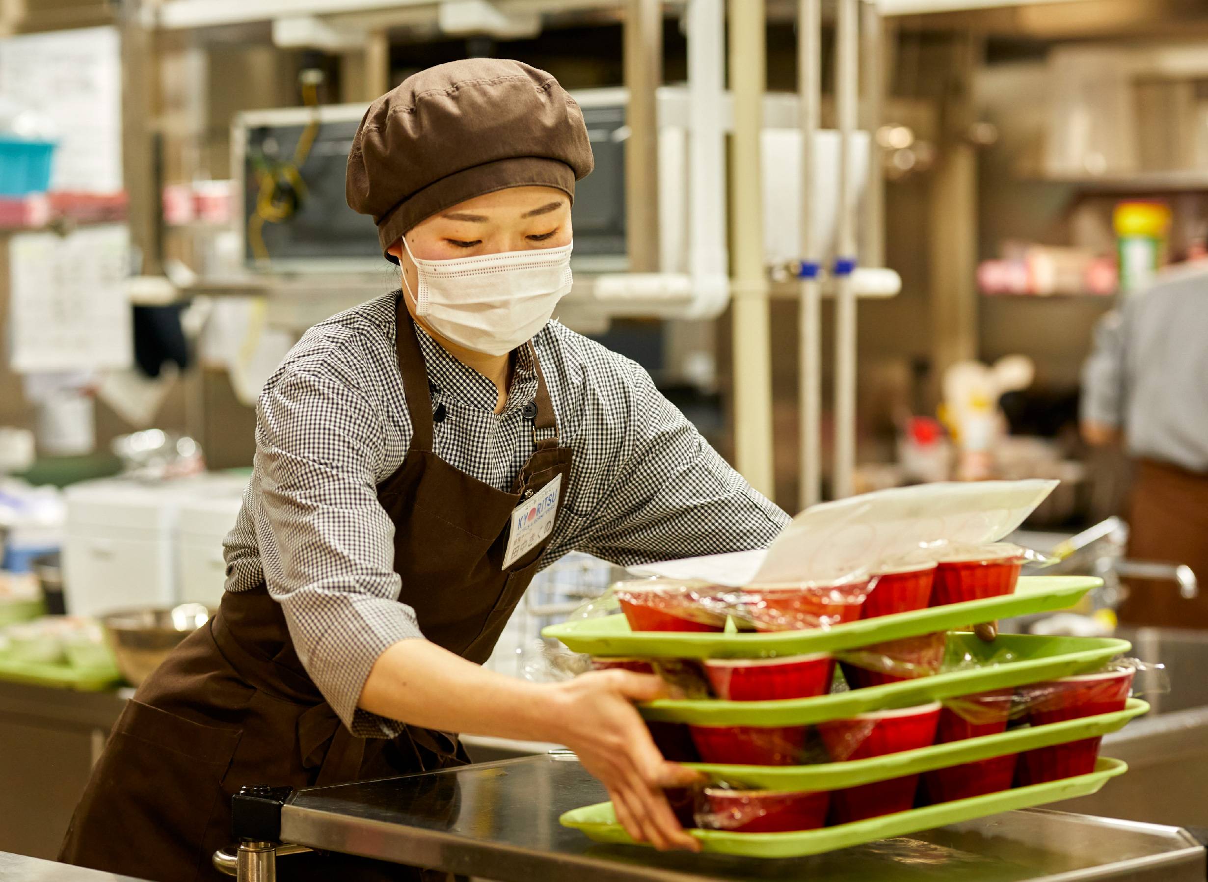 学生時代、学校の先生から紹介を受け、介護付有料老人ホーム「ドーミー中野江古田」へ見学に行きました。見学時に夕食もいただいたのですが、揚げたての天ぷらなど品数が豊富でどれもとてもおいしい。老人ホームでの食事イメージが大きく変わった瞬間です。同時に当時のシニアライフ事業部の部長から〈高齢者の食へのこだわり〉を聞いて、「こんなに熱い思いを持った方々といっしょに働けたら、自分も成長できるだろう」と考え入社を決断しました。