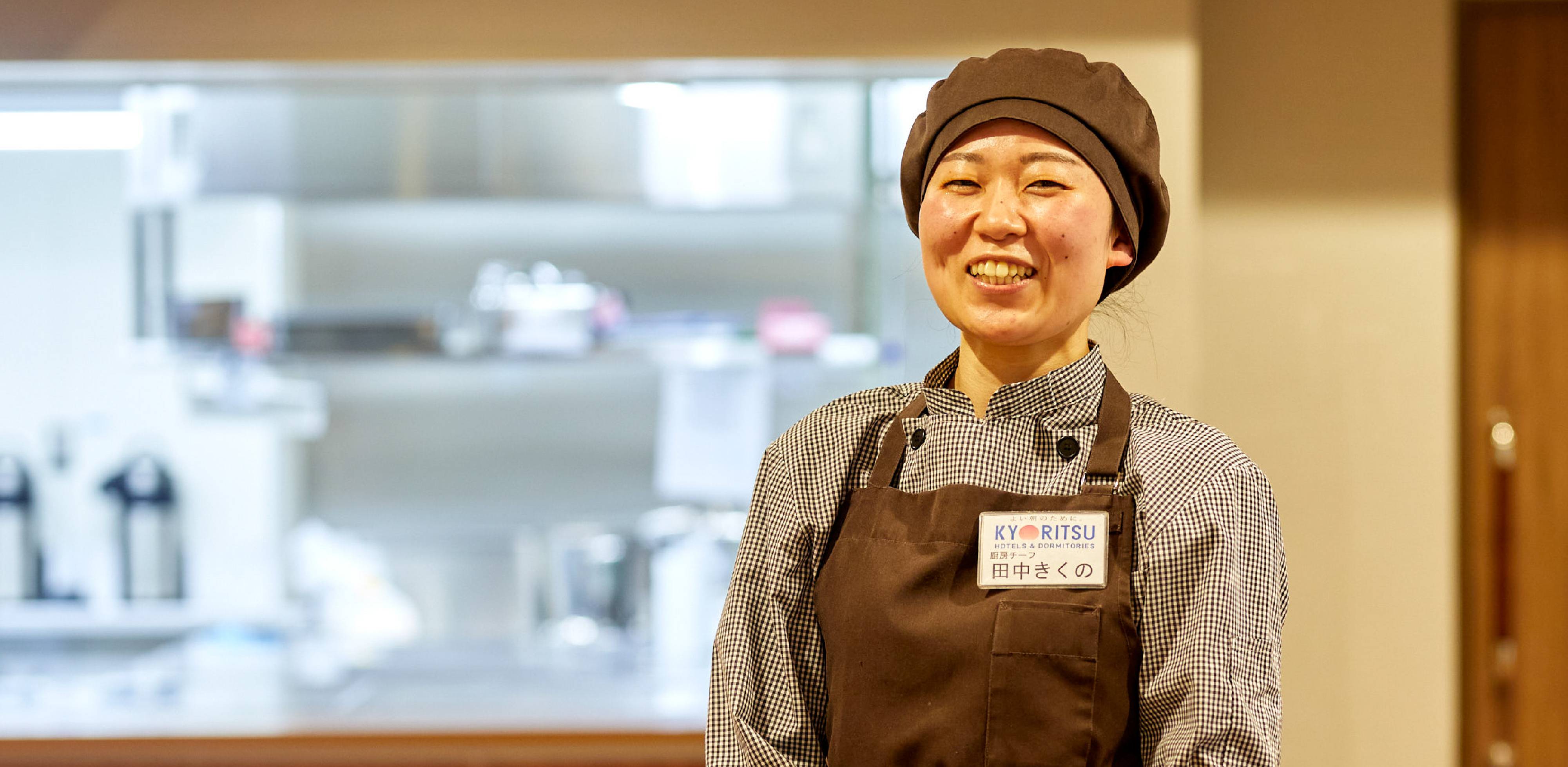 2023年9月にオープンした「ドーミー目白台」の厨房チーフとして、調理や仕込みだけでなく、食材の管理・発注、人材育成などさまざまな業務を担っています。ドーミーシニアは食へのこだわりが強く、体と心を健やかにする料理を提供するのが使命。おいしくて栄養バランスが良いのは言うまでもなく、見た目や香りなど〈五感で楽しめる料理〉で気持ちも満たされる食事のサービスを心がけています。