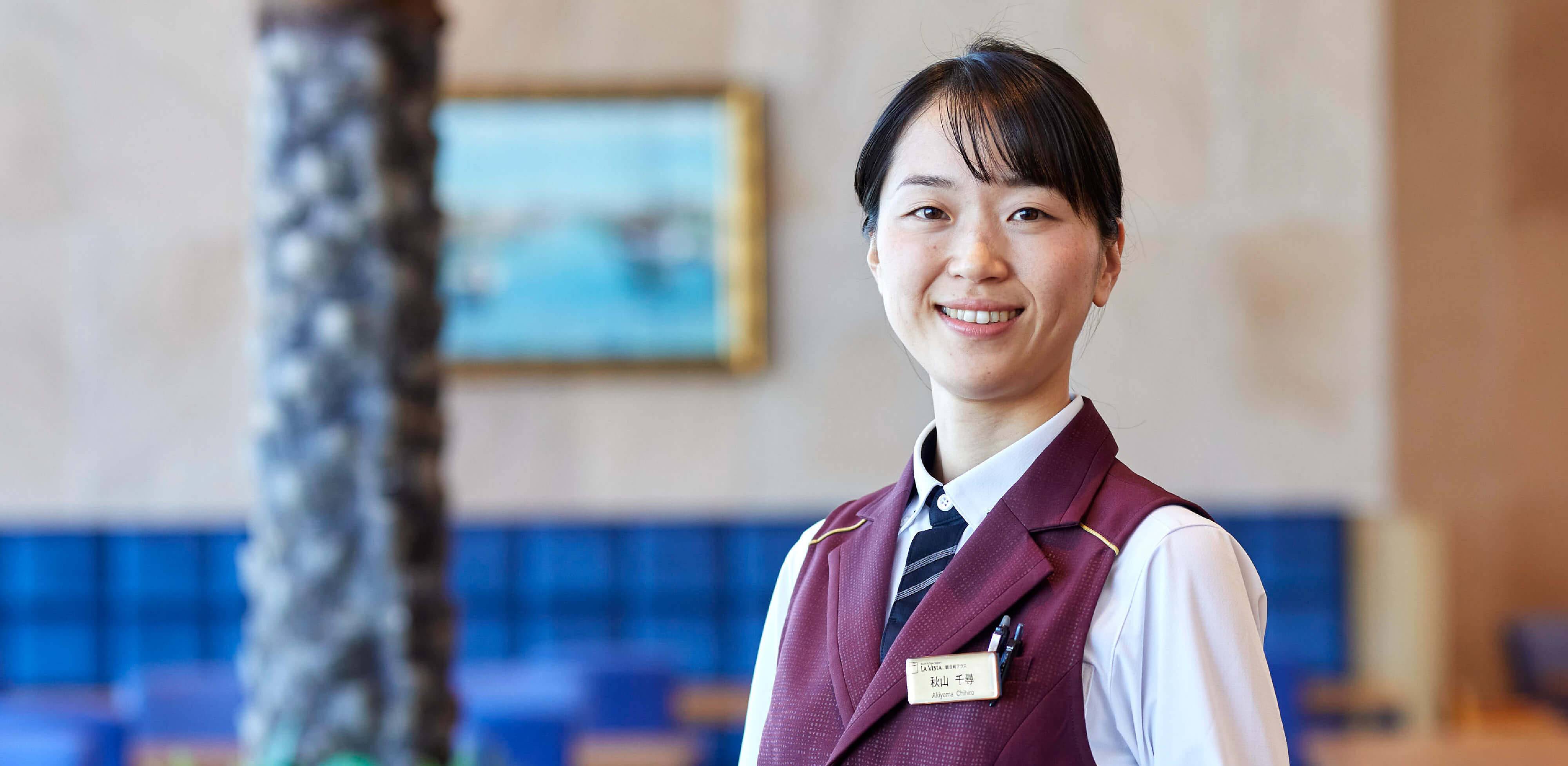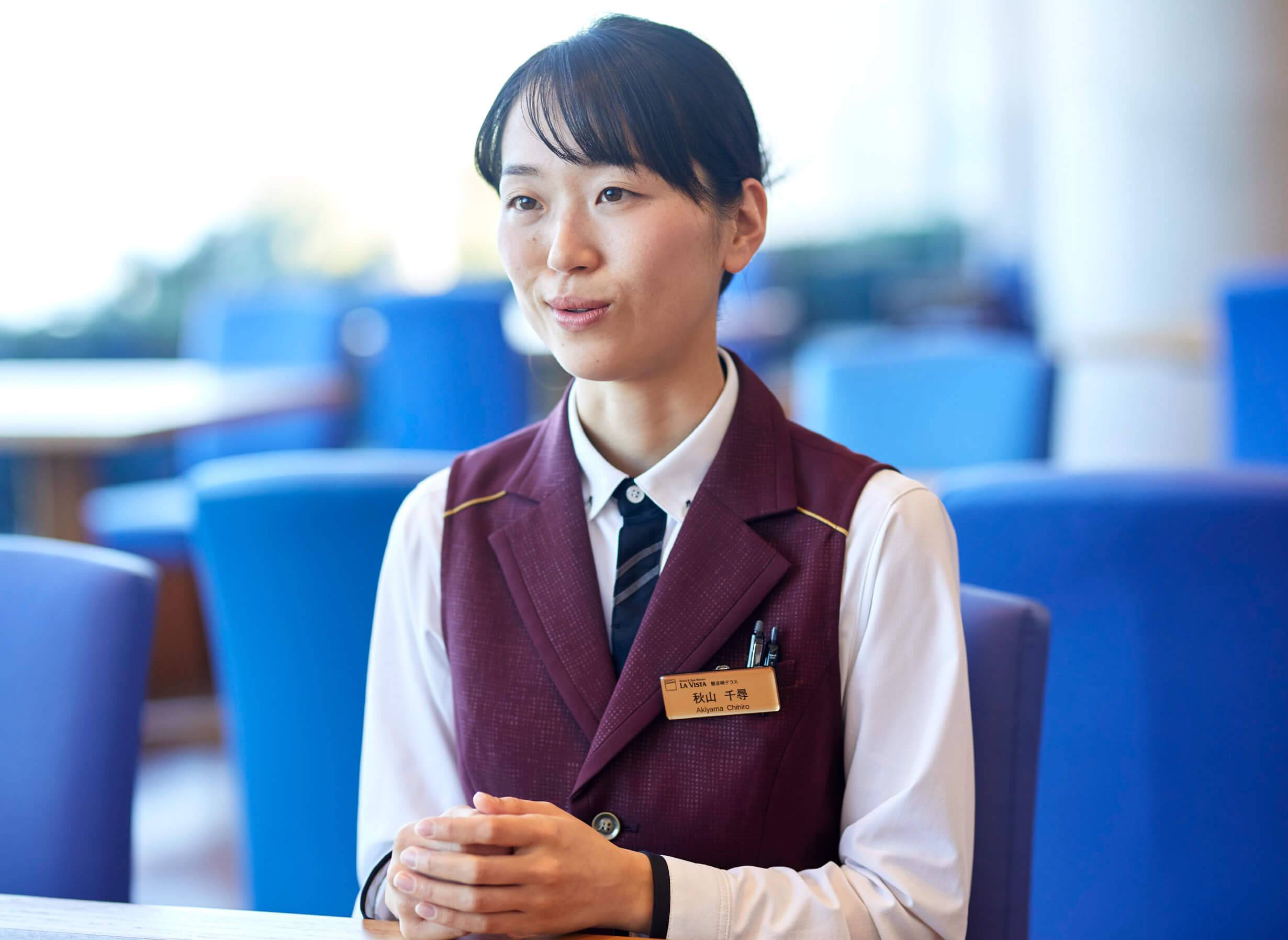 ホテル業界に狙いを定めて就職活動をしていました。志すきっかけは、洋食店でのアルバイト経験です。おいしい料理でお腹を満たして帰っていくお客様は、来たときより帰るときのほうが幸せそうで、私もお客様の幸せをつくりたいと思うようになりました。